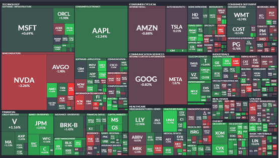 1. 大盘是横盘状态,而个股整体是比较强的。科技巨头表现不佳,7家公司YTD为-12%到-13%,如果刨除MAGA7,剩下493家公司的YTD为1%。整体还是上涨的。