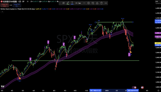 如果跌破当前低点,建议耐心等待更低的买入点位,例如5300或5200点。如果横盘后向上突破,则寻找新的做多机会。即使是反弹,也可能带来一轮上涨。建议做好心理准备,如果反弹到绿色线(生命线),可以考虑再次买入。如果是强的牛市回调,出现较大反转并突破横盘区域,则在5700点附近买入,并以5600点附近作为止损,追逐趋势。