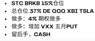 我们关闭了伯克希尔哈撒韦的15%的仓位,因为已经获得了4%的收益,并且能释放初更多现金